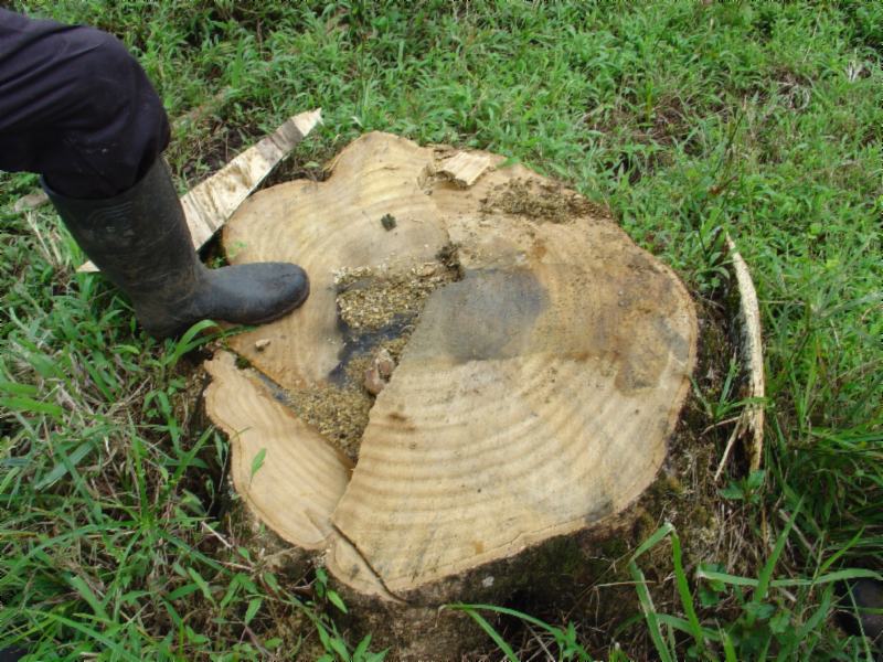 We built a house using first thinnings of teak grown near our first plantation. The posts and ceiling beams below are teak; the ceiling itself is laurel (Cordia alliodora), a tropical hardwood that's not as heavy as some, so it's very good for paneling ceilings and walls. We used a portable swingblade sawmill to ecologically harvest a fallen ojoche tree on one of our farms. The saw goes right to the log, so no damage to the terrain results. Here is the story in pictures.